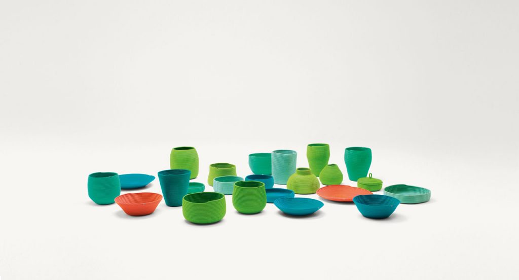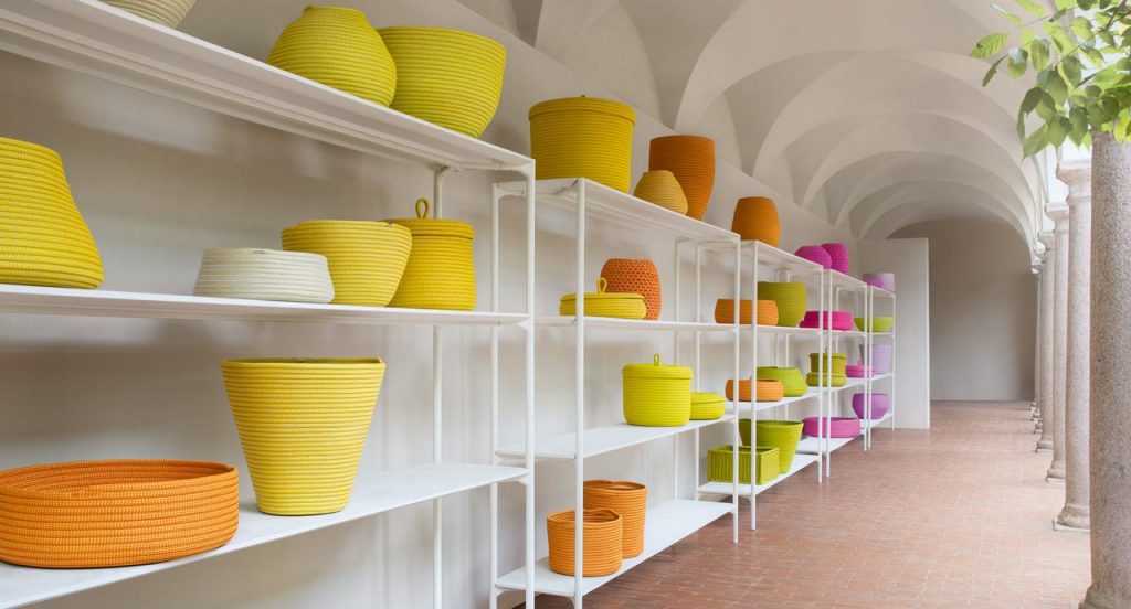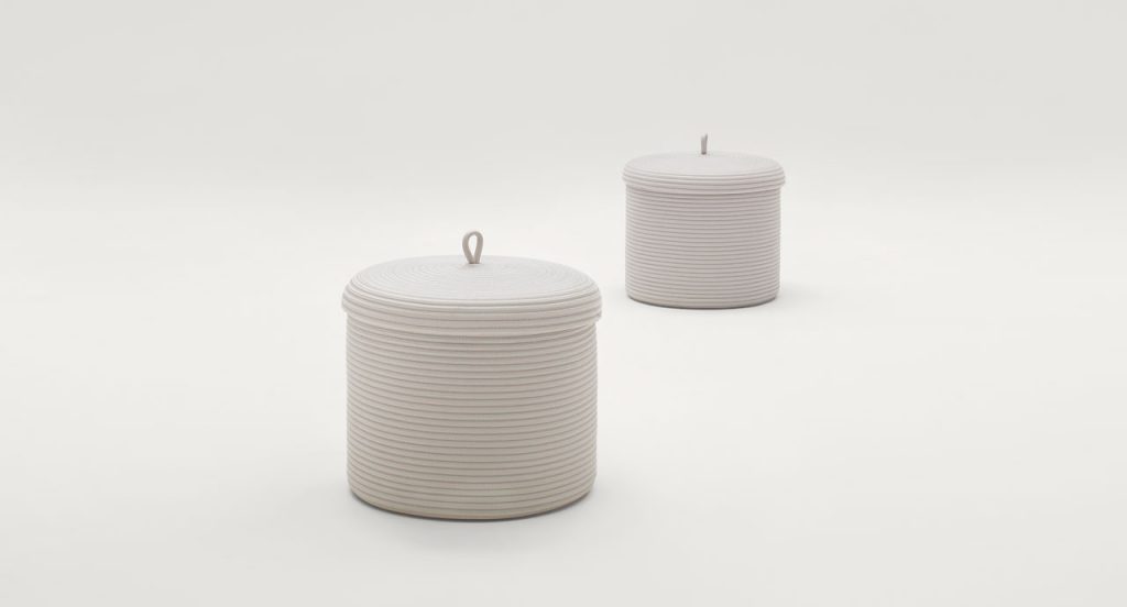 Series of baskets, vases, bowls and planter covers with different form and dimension, made with a Rope cord in solid colour or in a two-colours combination sewn in a spiral-like pattern. The Sika elements are proposed in pre-determined sets. Note: This product can be used also in interior environments.