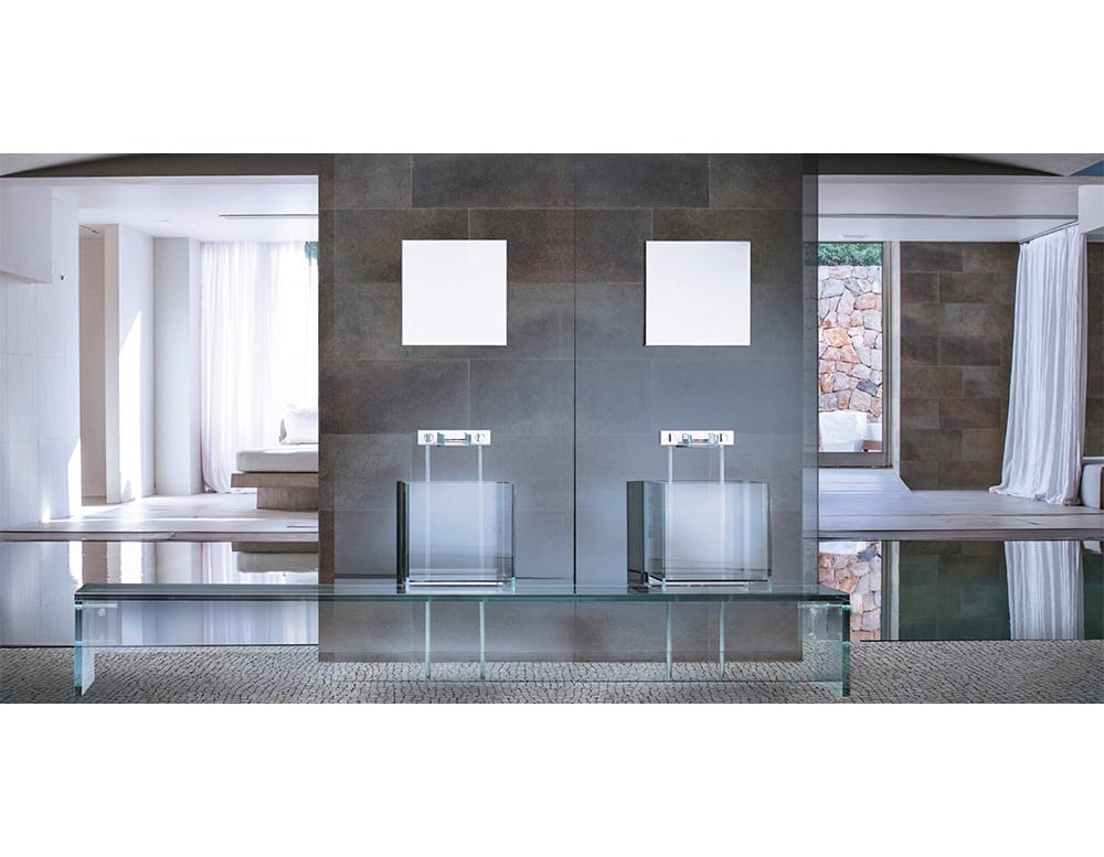 A concentration of contemporary and formal purity given by the glass transparency together with water. This is how the simplicity bath comes to life.
