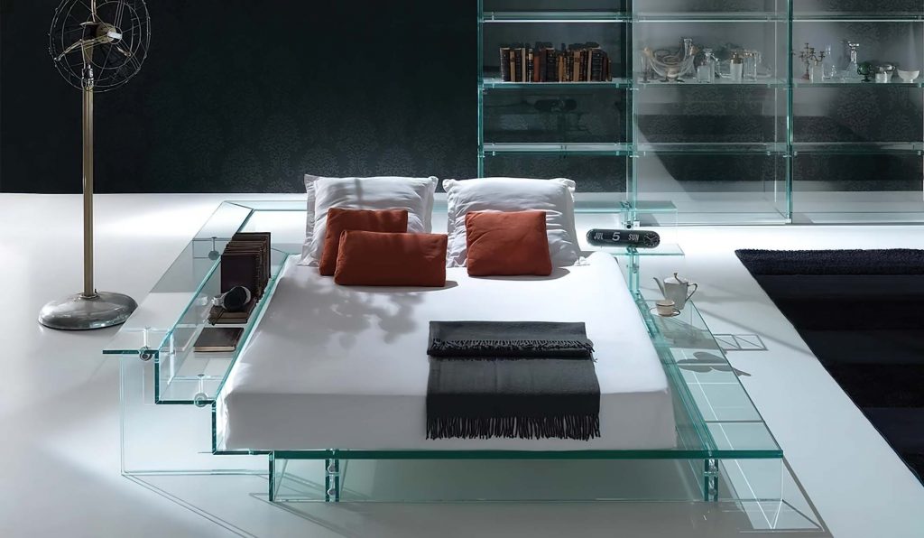 Able to communicate elegance between its essential lines, the Simplicity bed, seems as if it's floating in space. The body is suspended in space, as the