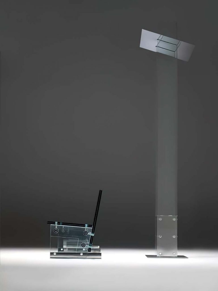 The light runs through the glass like a sap through a plant, starting from the earth and expanding towards the sky.