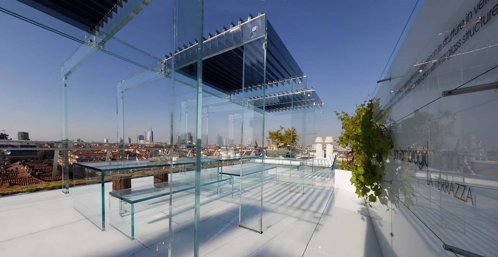 While in the prominence of the size and thickness, the pergola maintains a lightness and clean lines that comes from the material and a essential design.
