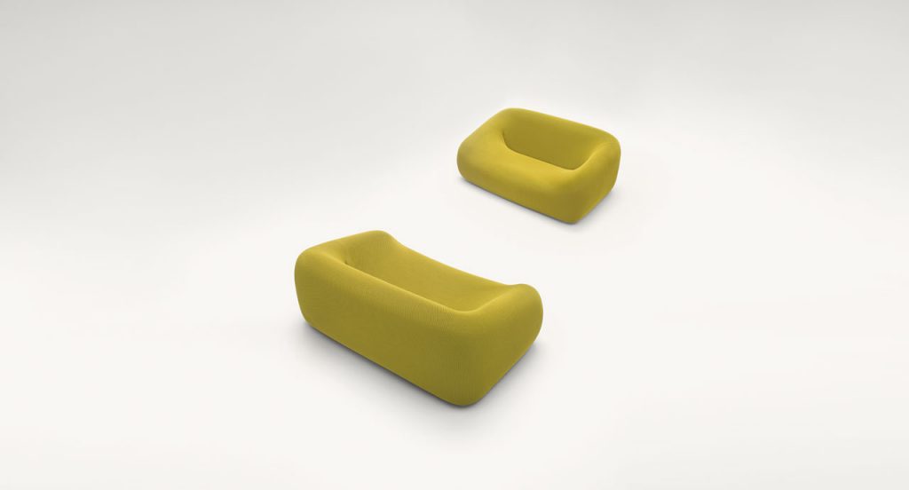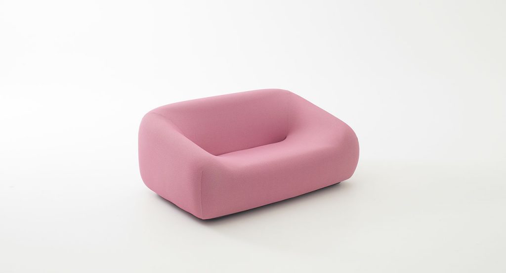 2-seater sofa. The Smile series also includes an armchair and a pouf-container.