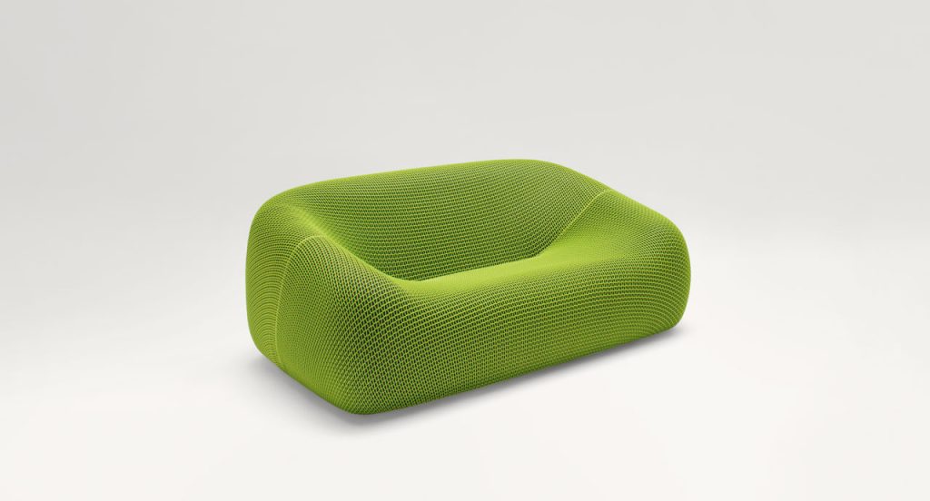 2-seater sofa. The Smile series also includes an armchair and a pouf-container.