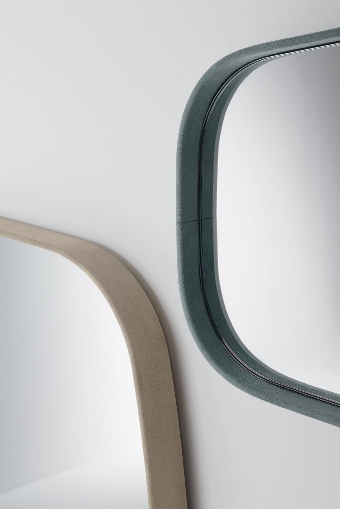 Extralight mirror with frame (thickness 5cm) covered by suede as per sample.