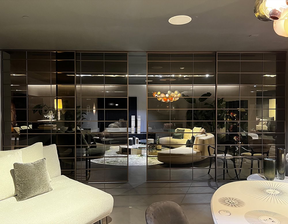 - 1x 2 way built in rail (228" x 41" x H3") with structure finish in 13 Nero