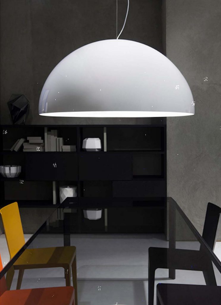 The story of Sonora is one of a pure geometrical shape, pursued by Magistretti throughout his entire life. The creative path followed by the architect and designer in his projects is, in fact, an absolutely peculiar itinerary: geometry represents a constant fellow traveller; his main source of inspiration, always and in any case, is simplification. Sonora, created in 1976, available in several materials and sizes, is one of the symbols of this creative path and it has remained, for the entirety of its 40 years of existence, one of the most appreciated lamps not only by the public but also by Magistretti himself.
