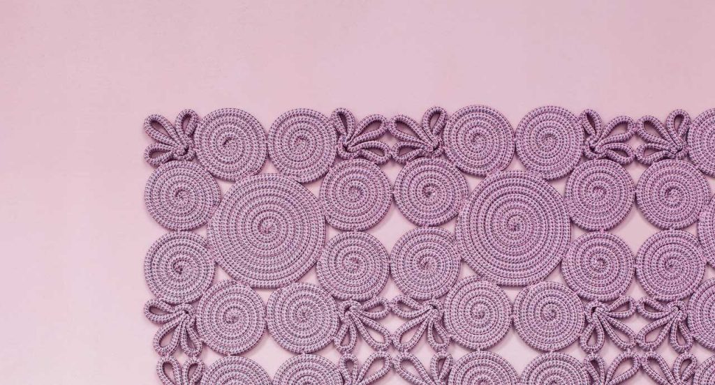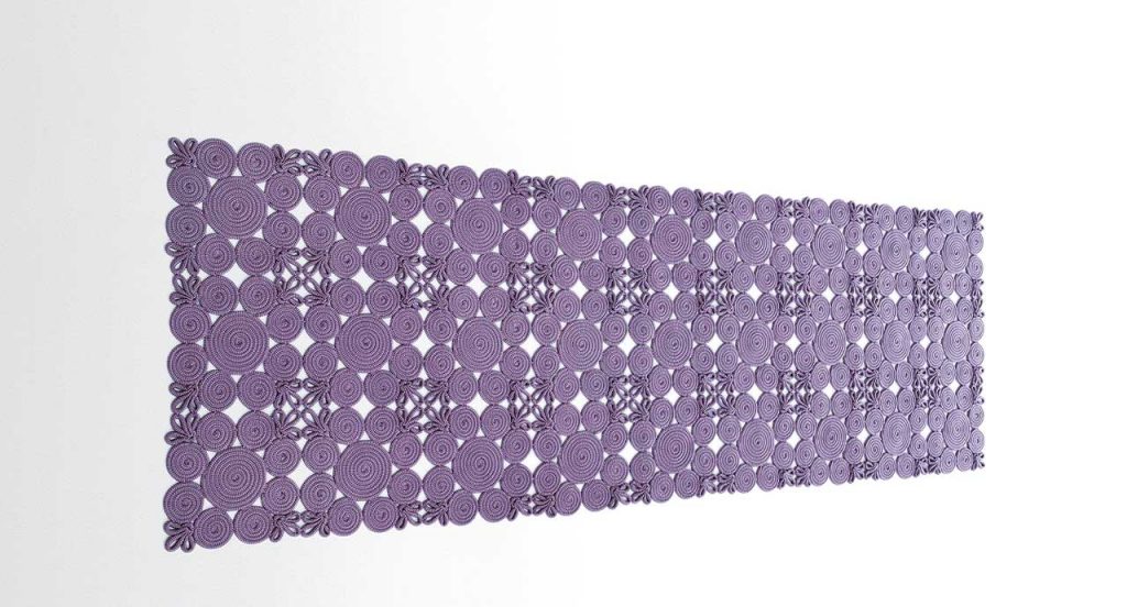 Modular rug for exterior and interior environments made with one- or two-colour Rope cords. The cord is winded up and stitched by hand to create spirals and stylized leaves. These elements are sewn together to produce the cm 33x33 modules which form the rug. The handwork and the preciousness of the designs leads Paola Lenti to advise against the use of Spin in high traffic areas. Only one colour can be chosen.