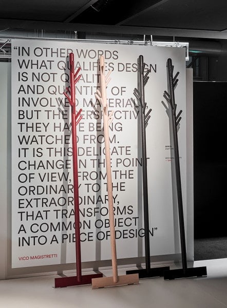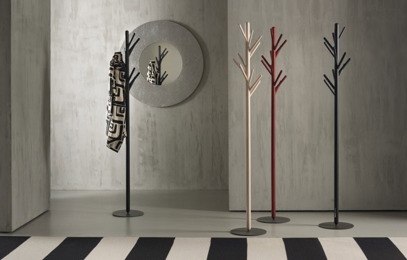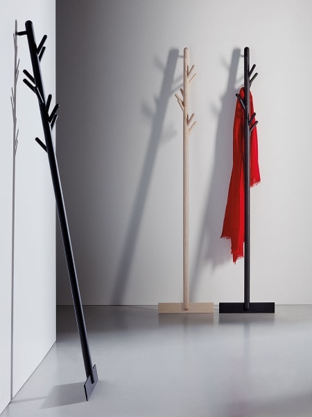 The essentiality of a project and absence of decoration have been the driving principles behind Vico Magistretti's very long artistic production career, even though the master himself acknowledged that "simplicity is the most complex achievement in the world". Spiros results from a change in prospect, from the everyday to the unusual, transforming a non-descript item – a "broomstick" – into a design product which becomes deeply captivating thanks a few masterful elements. There are two versions of this coat hanger: one to be rested against the wall, the other with a self-standing central base.