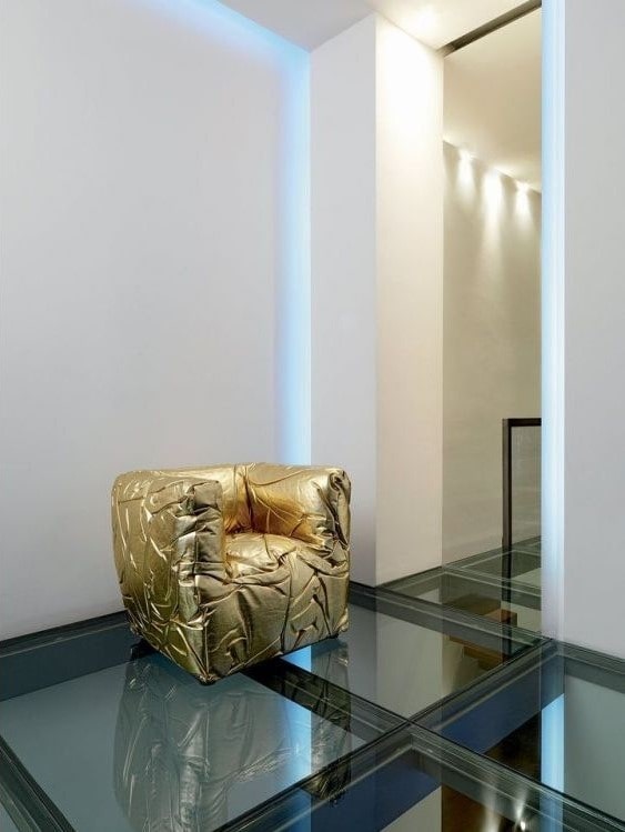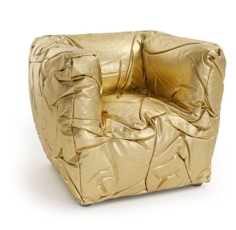 Armchair characterized by increasingly different folds that give an irregular result, every single time. The creation process, obtained by foaming the polyurethane directly into the covering, makes each piece unique.