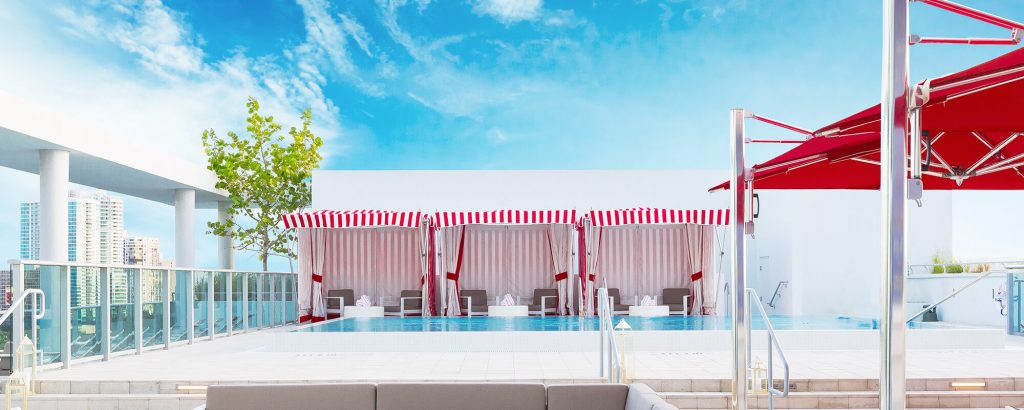 Adorned with luxurious fabric walls and interior trimmings for the ultimate in beach front privacy, the pavilion is inspired by the seaside lifestyles of the Mediterranean coast. The St. Tropez Pavilion features three fabric walls and a unique, height adjustable, retractable awning, as well as interior privacy drapes that are ideal for creating a secluded changing or storage area. This is the most luxurious chalet for soaking-in any sea-side landscape.