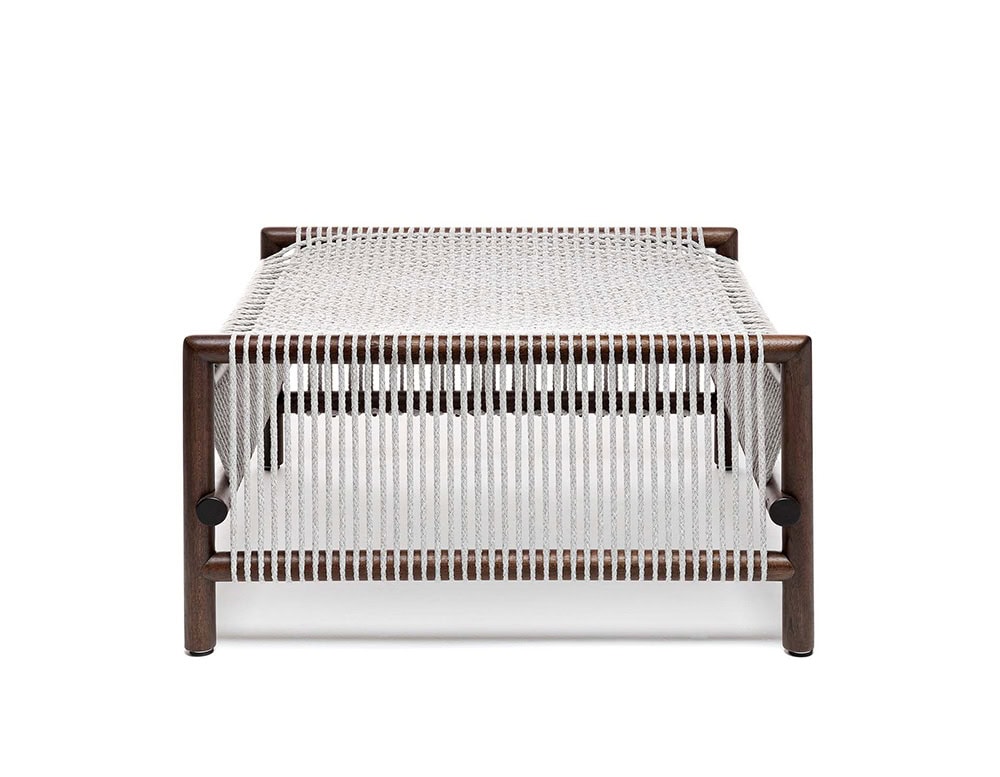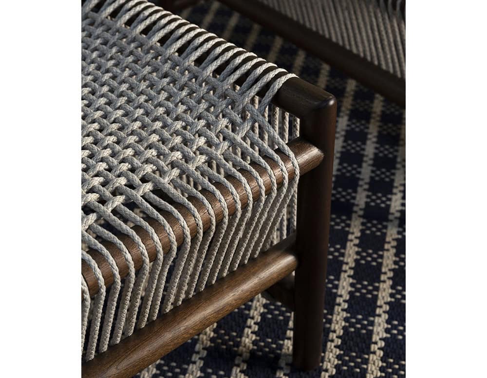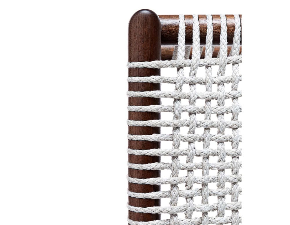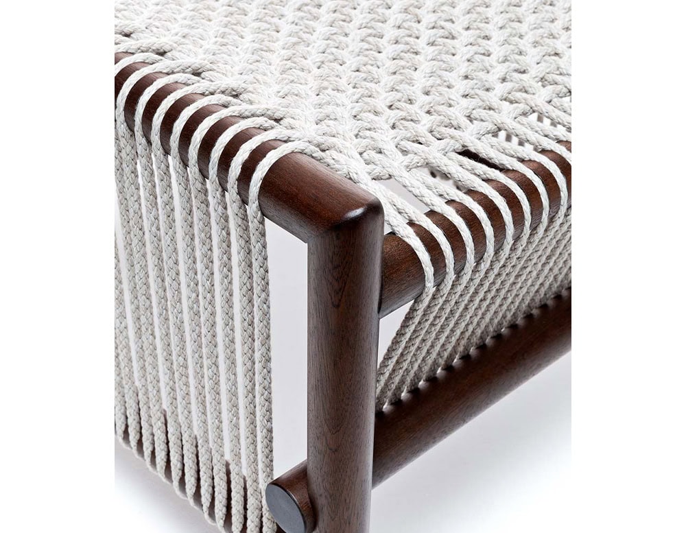 elegance of a Sapelli mahogany structure with the fresh lightness of hand woven rope.