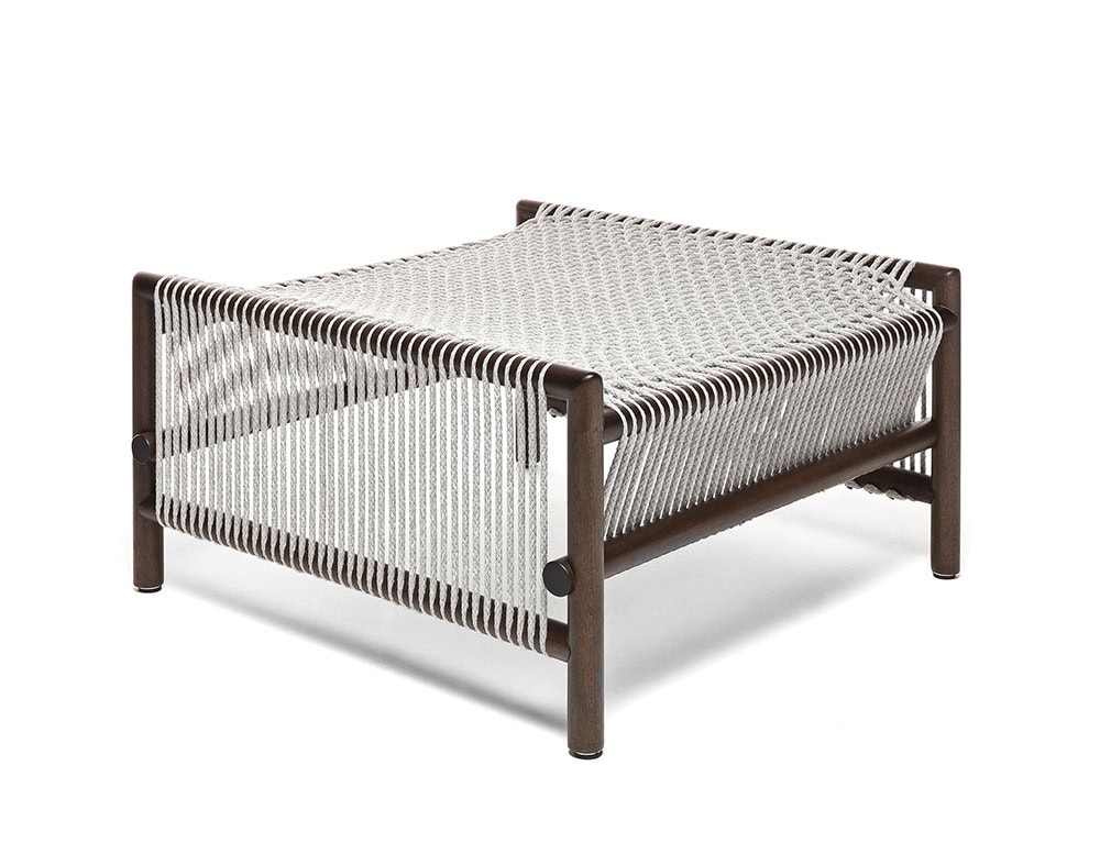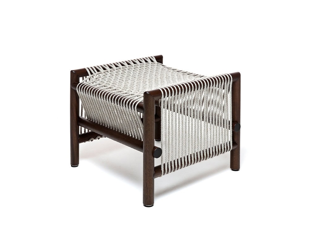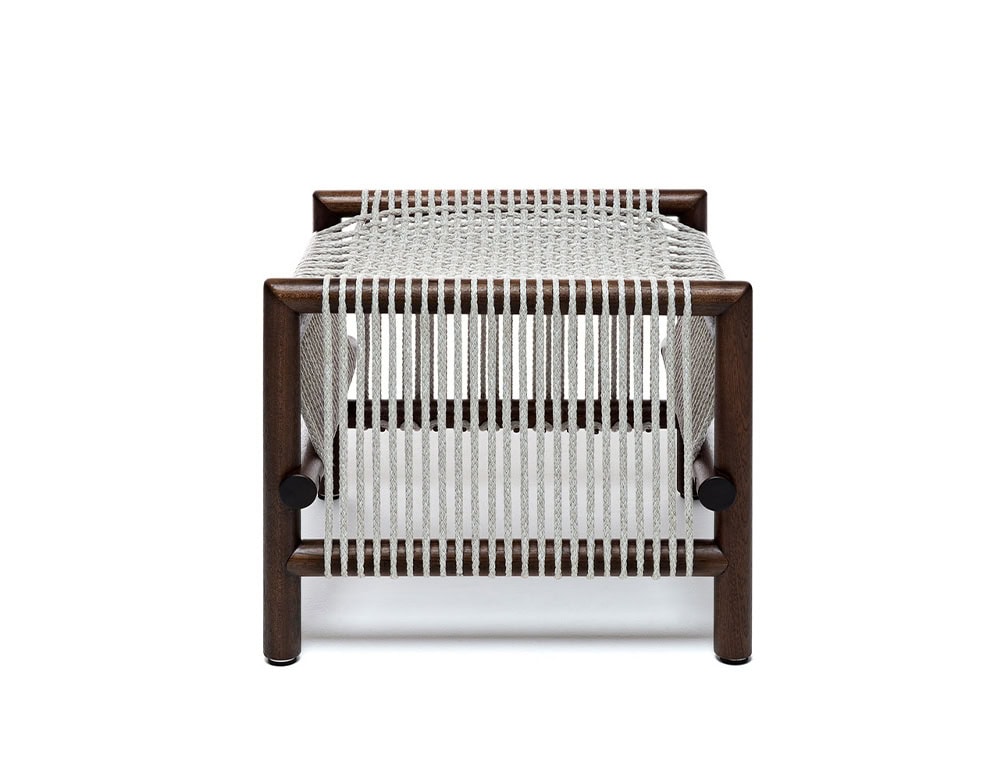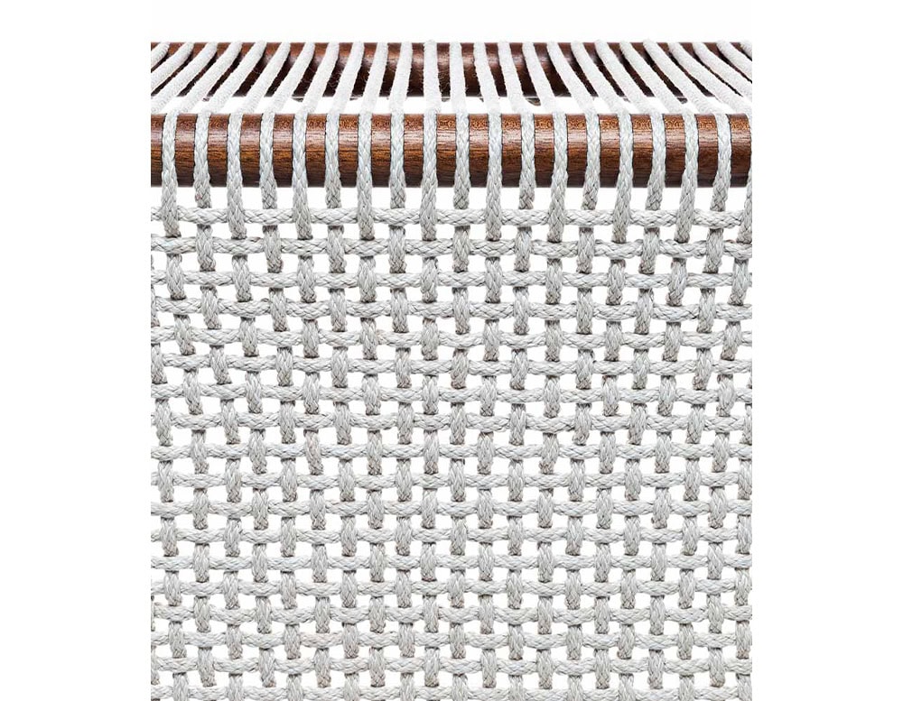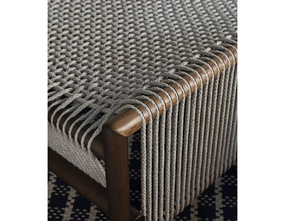 elegance of a Sapelli mahogany structure with the fresh lightness of hand woven rope.