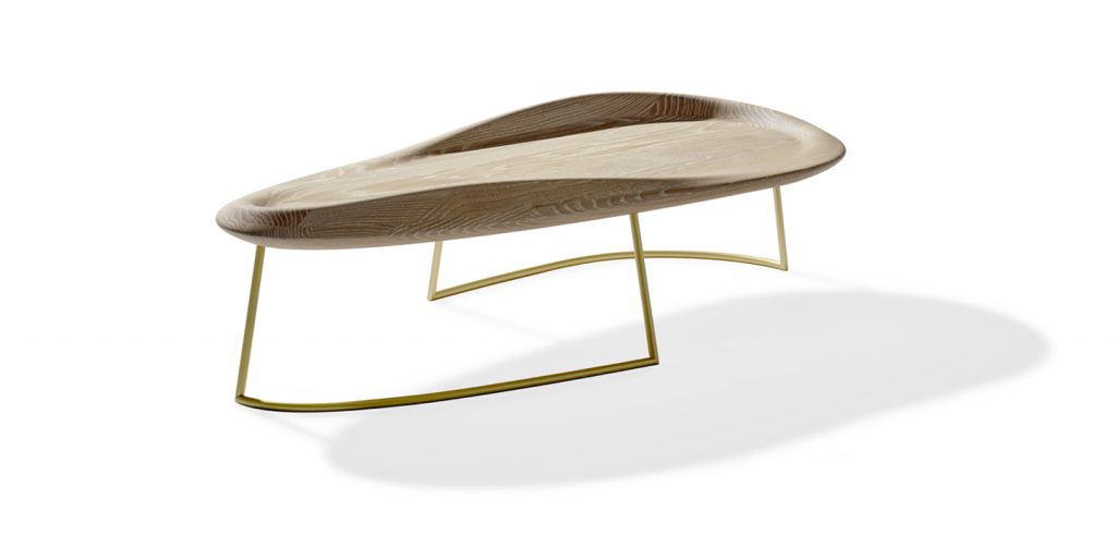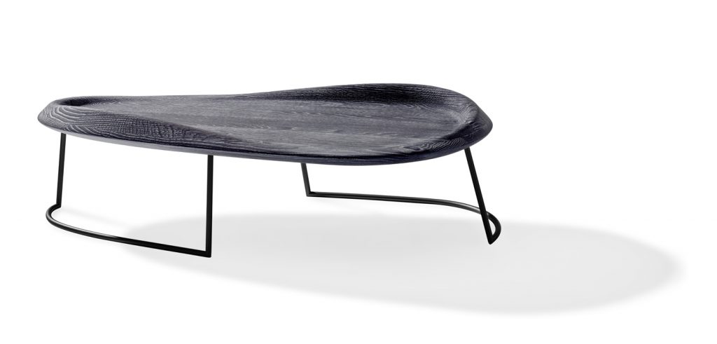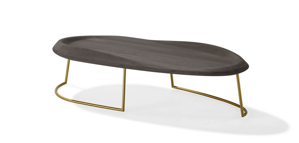 Inspired by the clean lines of a surfboard, the edges of the Surf Table are evocative of an undulating wave lapping at the board. The sinuous and sensual form of the Surf Table was handcrafted from oak, which was selected for both its durability, and for the striations emerging from the grain. Available in either a vintage black or natural tones, the base is available in black, dark bronze or gold tones.