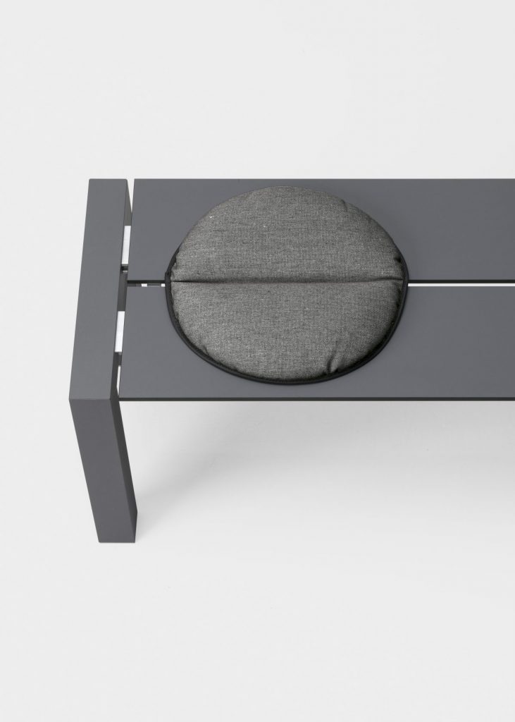 The top is made of thin Fenix-NTM® slats: a material with warm and soft aesthetic, which is light, sturdy and resistant to weathering. The frame is made of anodized aluminium, an eco-friendly material ideal for outdoor use. In addition to a wide range of tables in different sizes, the collection includes a matching bench for use as a chair or a versatile furnishing accessory, which can be complemented with a Lips removable cushion.