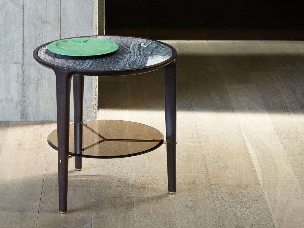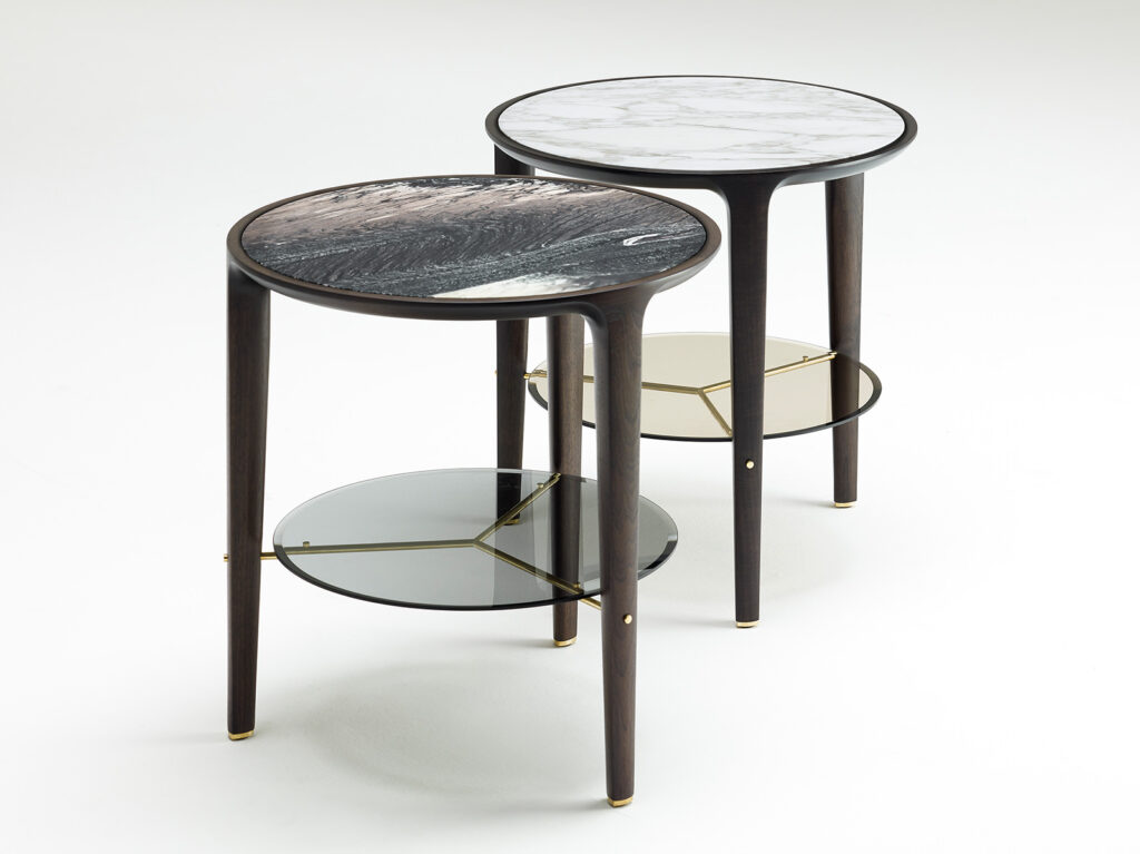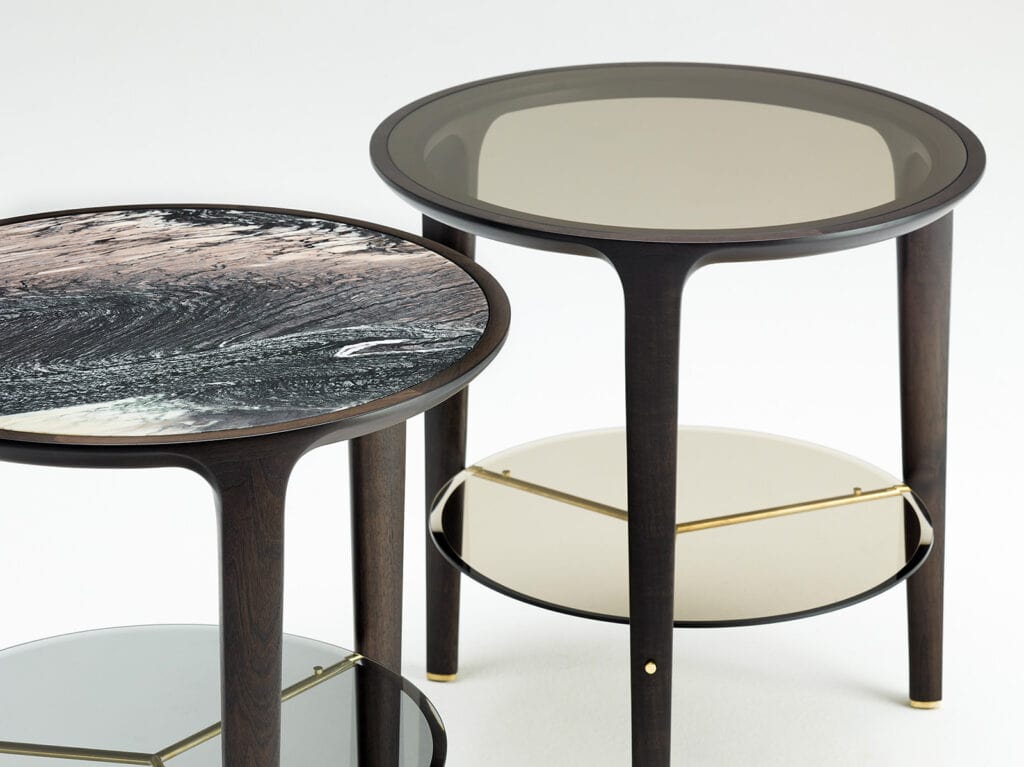 Small table made in solid American walnut. Top in 8 mm tempered glass or marble.