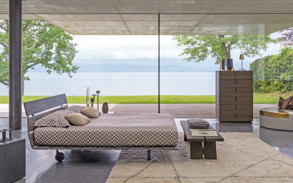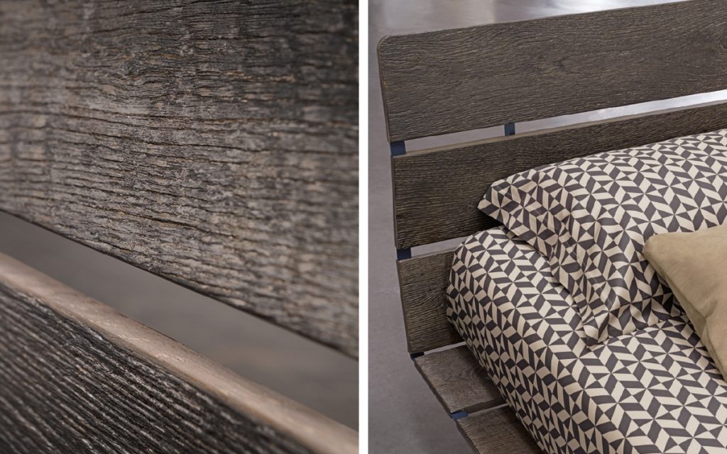 A bed of Oriental inspiration, elegant and clean-cut. The mattress support consists of strong slats that continue upwards to form the headboard. Tadao is available in Larch (polished or matt finish), in Canaletto walnut, in oak coffee, in the scratch-resistant surface finishes Style (sand colour), Epoque (white and grey colours) and in primitive wood (oak wood reclaimed from beams, planks and facades of historical buildings, aged naturally during 200-300 years of exposure to the elements). Tadao in primitive oak is produced in a limited annual edition, depending on the supply of materials. The timber, marked by the signs of time, makes each piece precious, unique and unrepeatable.