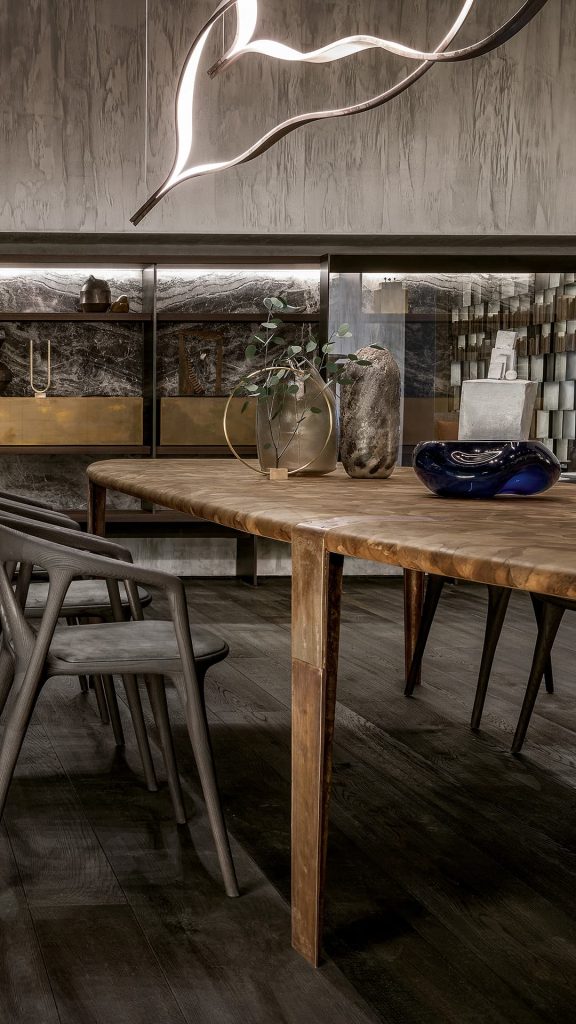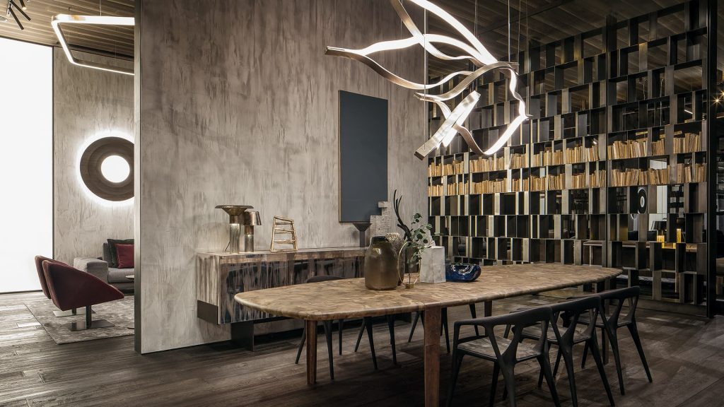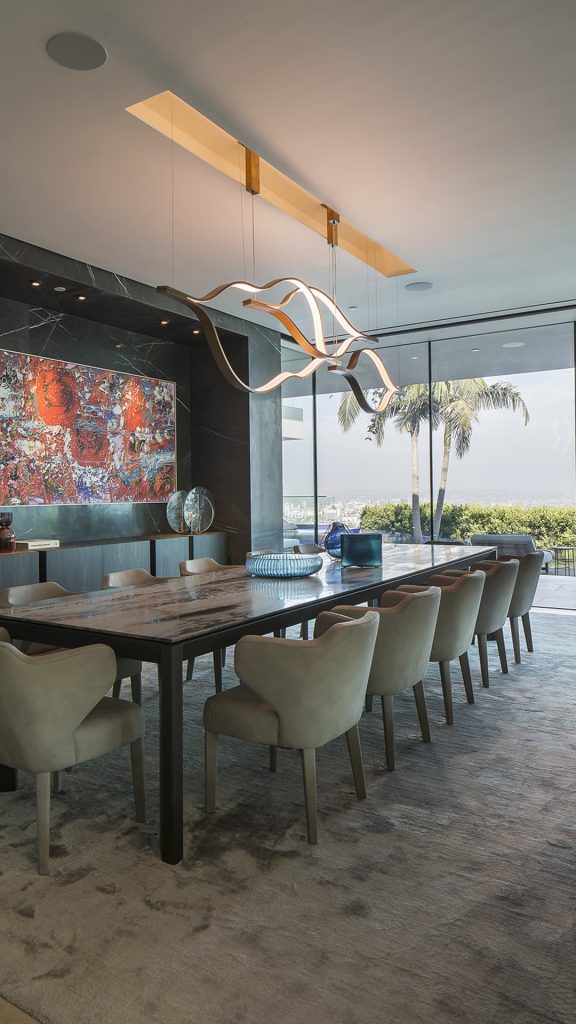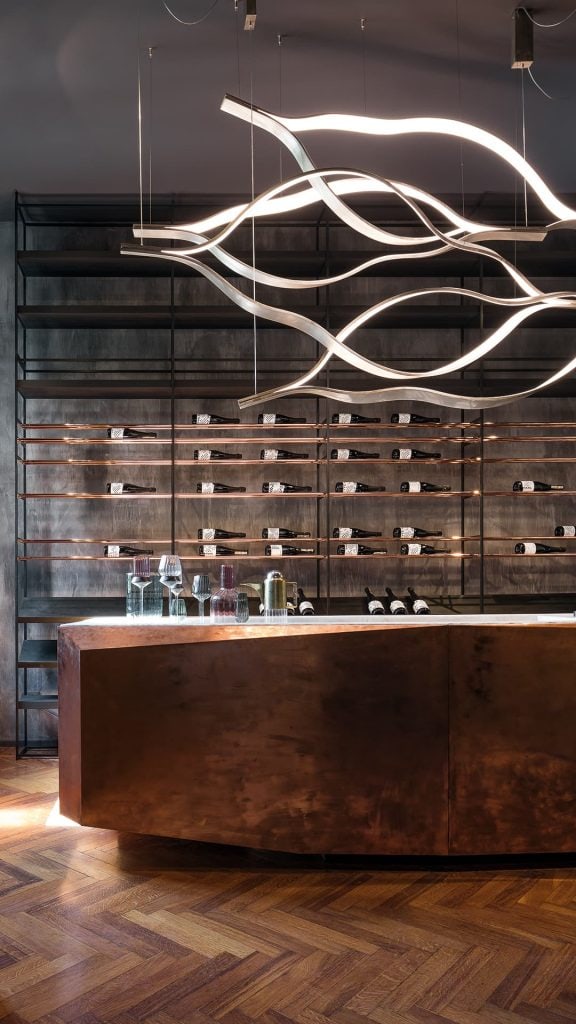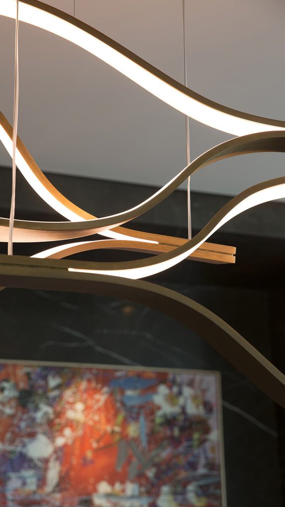 Pendant energy saving led (energy efficiency index a) lamp with warm light, of various sizes and types of illumination; incorporating transformers in the ceiling rosette, low voltage power supply to the rings through the suspension cables. Standard overall height 180 cm