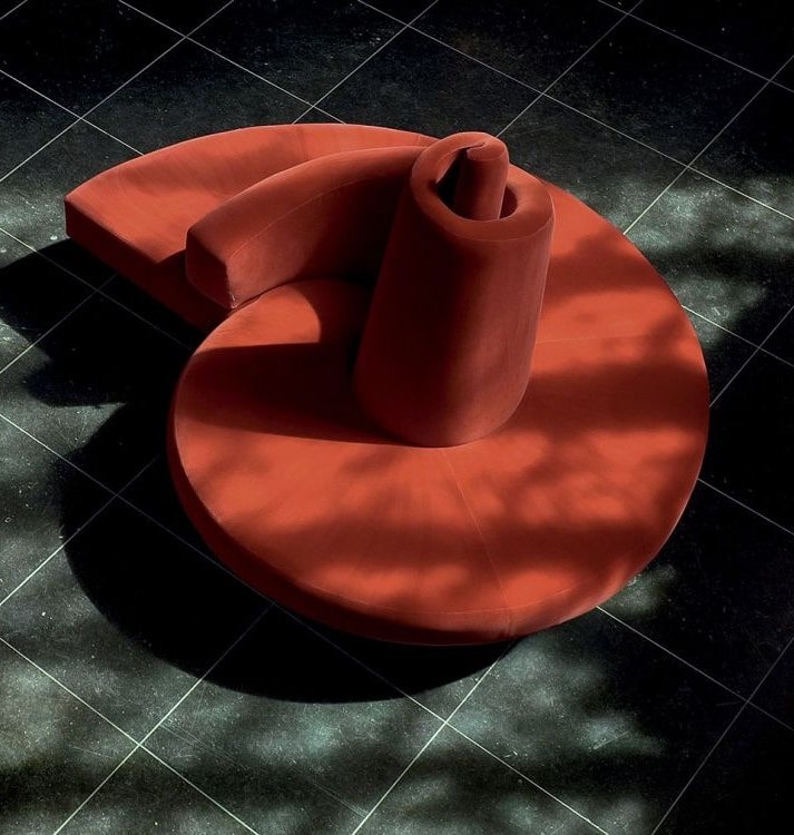 Sofa for the center place in the room loosely based on the Tatlin tower, emblem of Constructivism. A modern totem, perfect also for public spaces. It allows new possibilities of seating, offering room for more people. A true work of architecture. A real Edra icon.