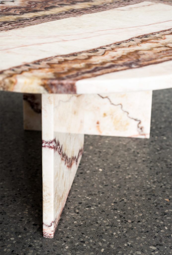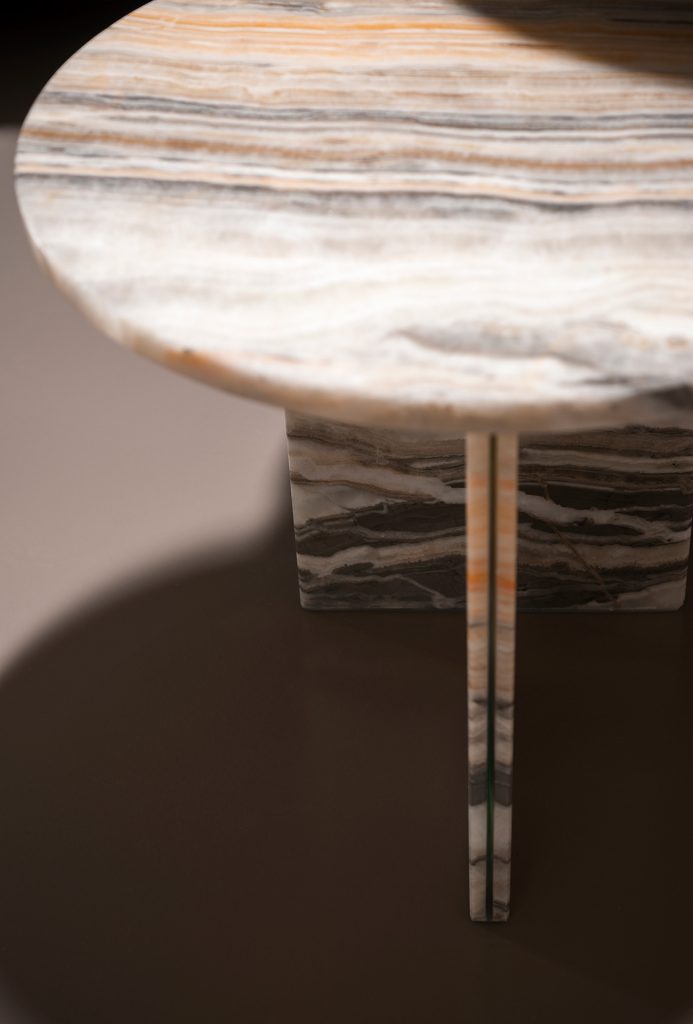 Gradient brown marble table with imperfect and elegant bases with a gray background