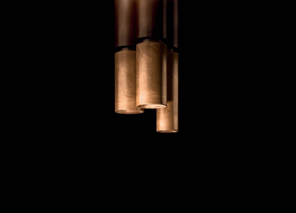 Ceiling led light. Burnished brass and h-silver by hand using traditional techniques, shine brass and shine copper.