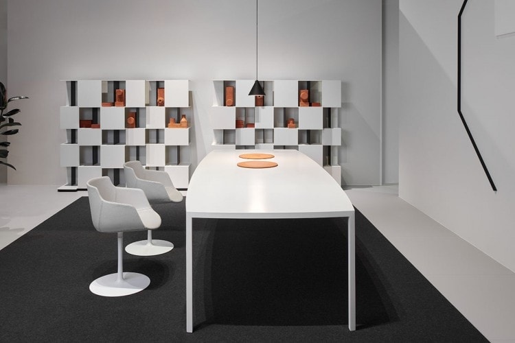 Tense, MDF Italia's elegant and versatile table, extends its already wide collection with a brand new proposal: Tense Curve, featuring a soft and sinuous silhouette. The new version originates from designers Piergiorgio and Michele Cazzaniga's will to undertake new formal researches, that enabled them to approach the round shape, that allows to increase the conviviality of guests, who can interact when they are sitting, with no sight restrictions. Presently available in white resin, reconstructed stone and marble, diamond, wood and carbon, Tense Curve can be ideally placed in both dining rooms and living areas, and in working contexts, where oval-shaped tables are increasingly appreciated in meeting rooms.