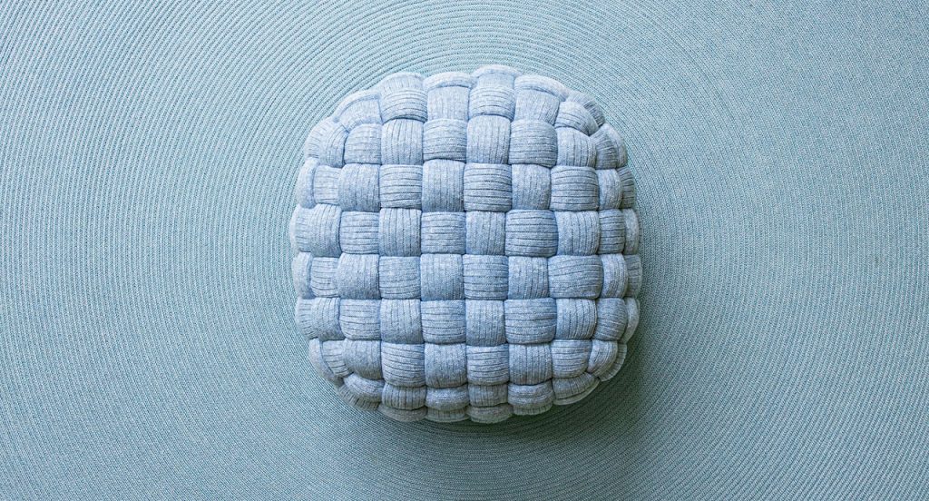 Series of pouf available in different dimensions with removable cover made by hand weaving element in tubular knit.