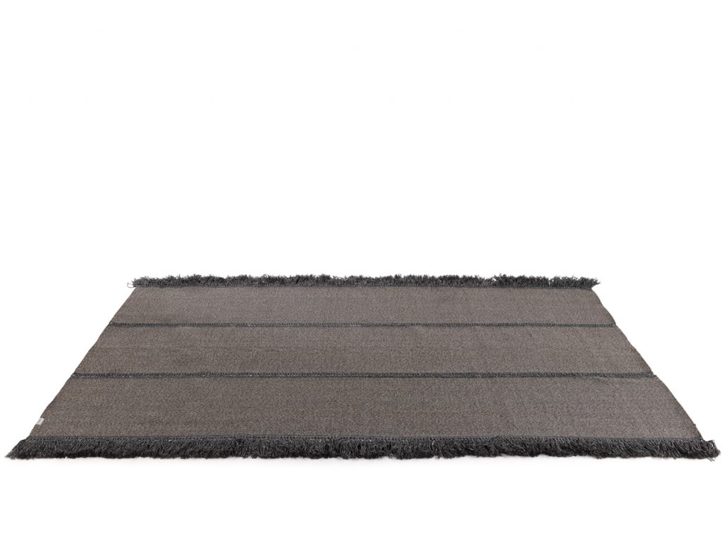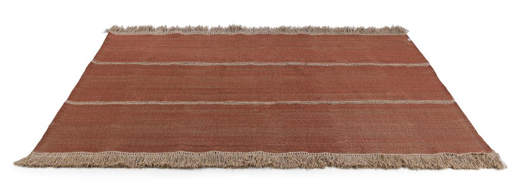 Handmade on looms using synthetic fibre yarn, the TRIPTYQUE outdoor rugs offers the highest performance, while maintaining a soft and elegant aspect. TRIPTYQUE is characterized by the subdivision into three identical portions, punctuated by the harmonic alternation between the yarn and the warp, obtaining a motif that evokes the sartorial hemstitches.This collection of design rugs is available in three different colours, Stone, Natural and Brick. The intertwined fringes that close the warp always characterize the three-meter side. Length 300cm 118"2/4 Width 200cm 78"3/4