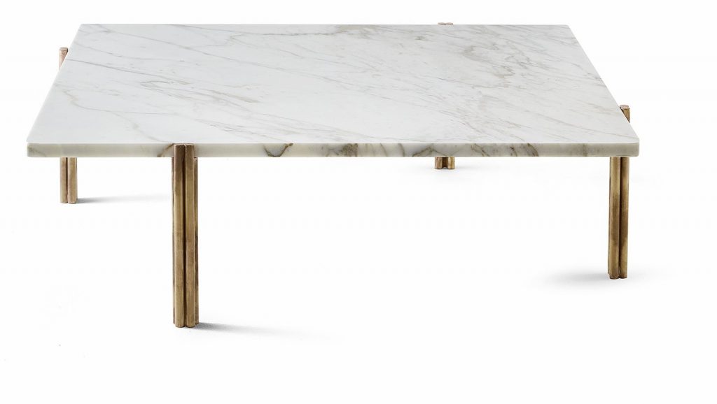 Coffee table with Calacatta Vagli Oro marble top or with bright brass plate. Hand burnished brass structure.