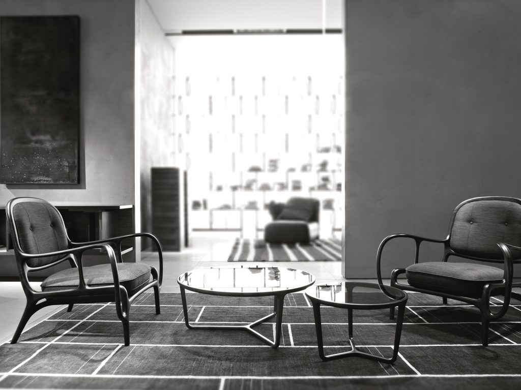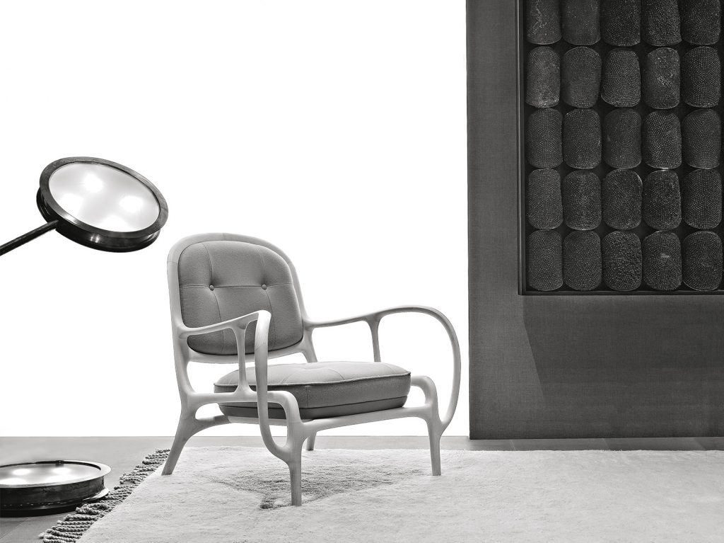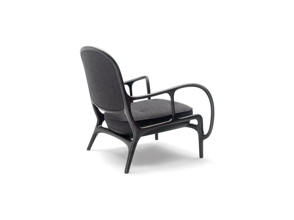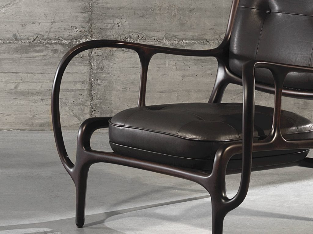 Armchair made in solid American walnut or maple wood, upholstered seat and back-rest.