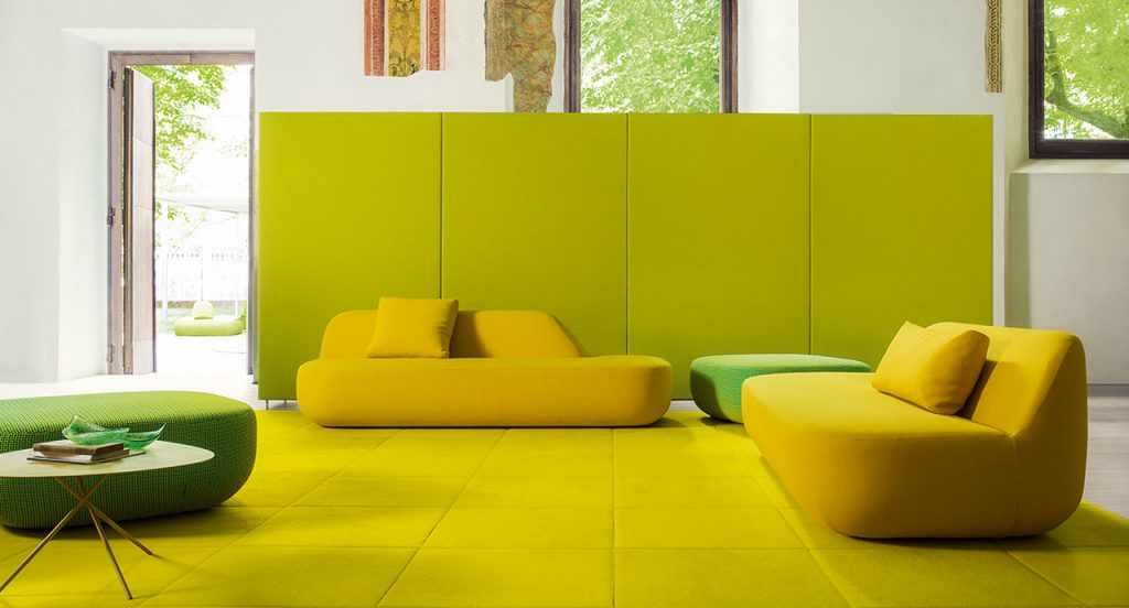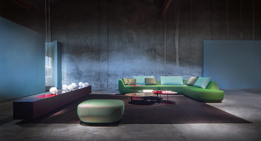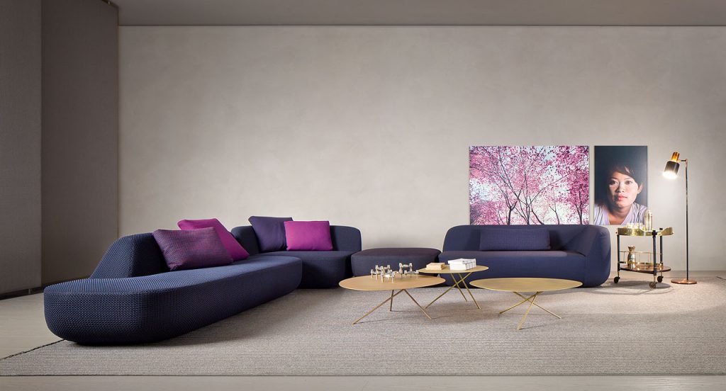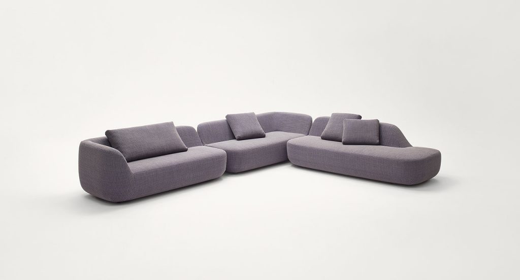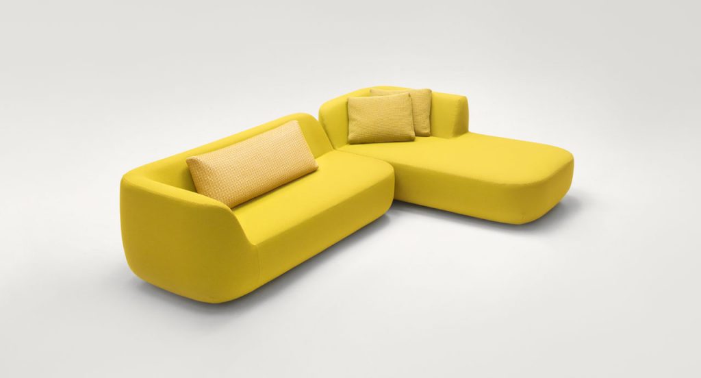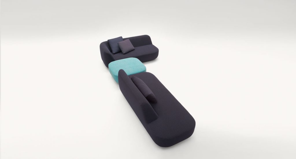 Sectional seating system composed of elements with armrest, chaise longue ans left and right asymmetrical elements. The series Uptown includes also a pouf. - Structure: steel. Plastic spacers. - Padding: cold injected, stress resistant polyurethane; foam covering in polyester fibre and polyamide. - Upholstery: removable and available in a selection of fabrics in the collection. - Notes: The series is completed with loose cushions with shape and dimension specifically designed to enhance seating comfort. Uptown elements can be composed without coupling system. - Awards: The Uptown series has been awarded the RED DOT AWARD Best of the Best 2017.