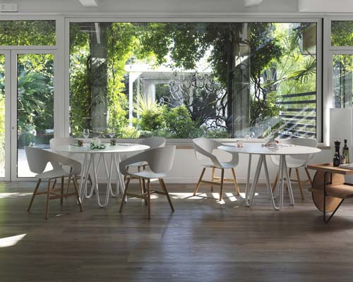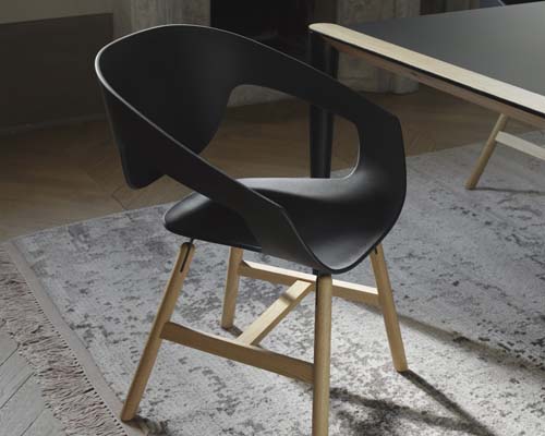 Vad is a collection of chairs available with different types of legs (wood, metal rod, or swivel trestle) and with a reinforced polypropylene body obtained by injection moulding. The shell can be upholstered in hard leather or padded and upholstered in fabric, soft leather and eco-leather. In the Vad Wood version, the structure in natural oak or Canaletto walnut makes the seat more elegant and refined while maintaining the typical taste of the Scandinavian tradition.