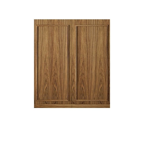 Door that features a brown structure finish with glass in 62 Rete Bronzo. It includes two panels (1VRPNE15) and a 2005 brown handle. The hardware kit is finished in aluminum, combining functionality with a modern aesthetic.