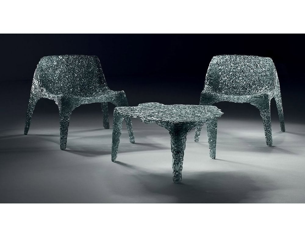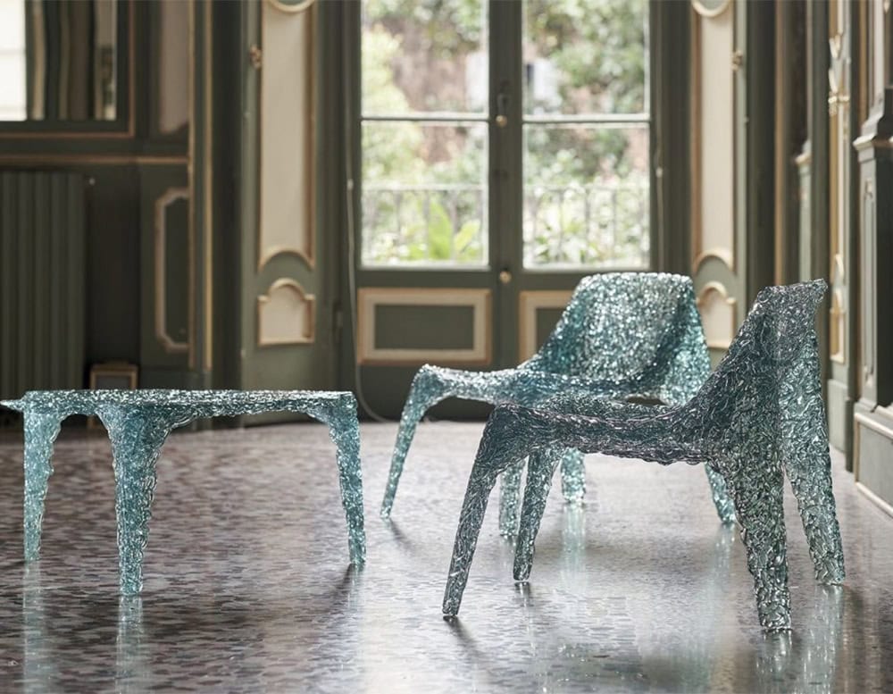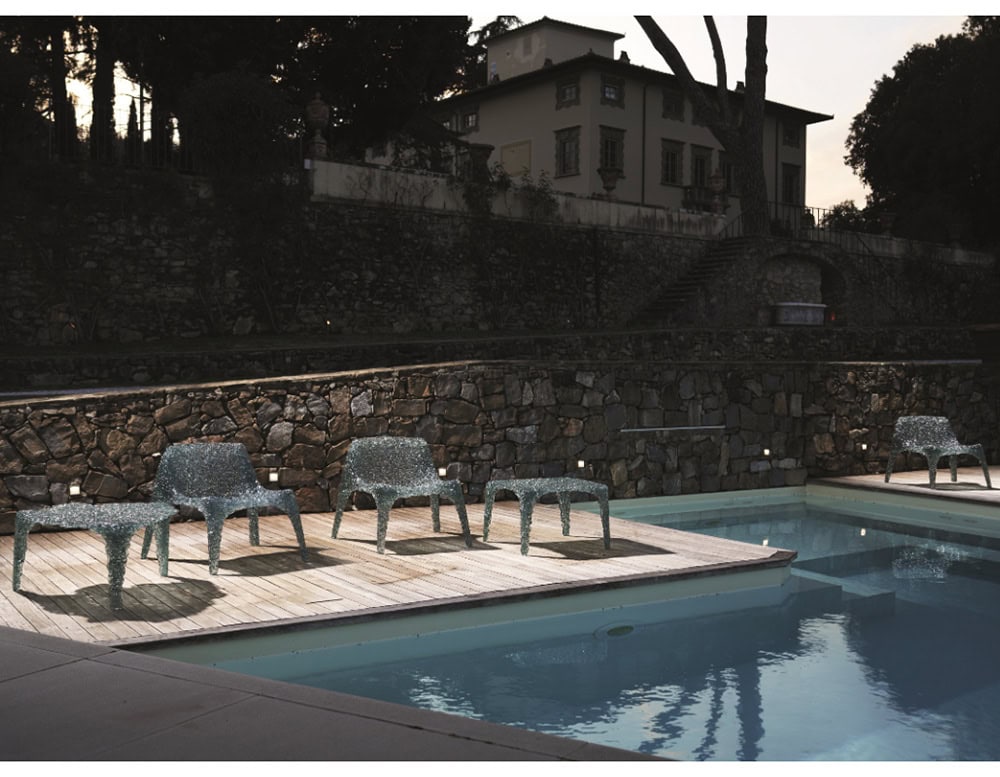Clear and with the lightest of shades of colour, suave, imperceptible, in this collection where each model is made from a single weave of polycarbonate, moulded by hand in the classic green colour of natural glass.
