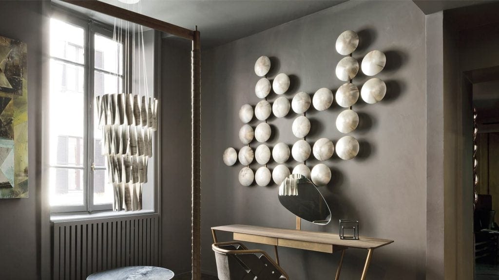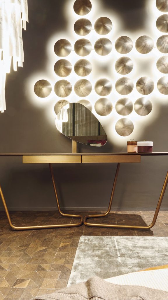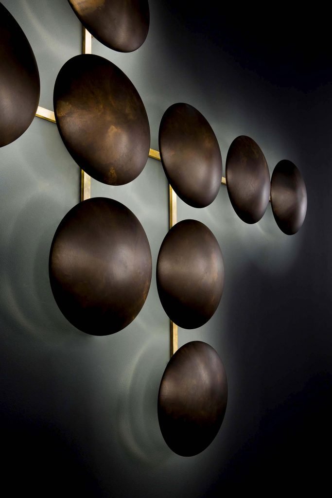 Wall sconce energy saving led lamp (energy efficiency index a). With warm light, cob led. Clips, ø 23,5 cm. Dimable upon request. Only for indoor use. Finish burnished steel, burnished platino, burnished titanio, burnished brass, black burnished brass, h-silver, h-silver black, shine copper.
