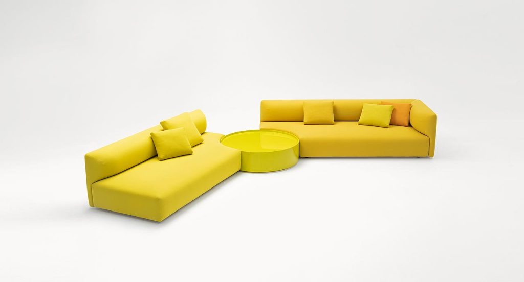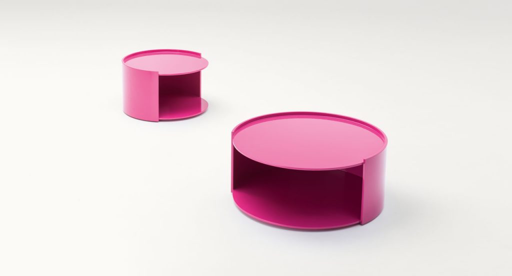 Large side table and little side tables with a side opening. The Walt series also includes two-seatr and three-seater sofas, linear or shaped sectional elements, with or without removable seat cushion, and poufs. - Structure: wood fiber finished Mano Lucida, plastic spacers. - Notes: Walt side tables with a side opening can be used also as nightstands completing the Silent beds.