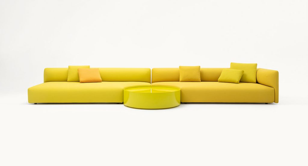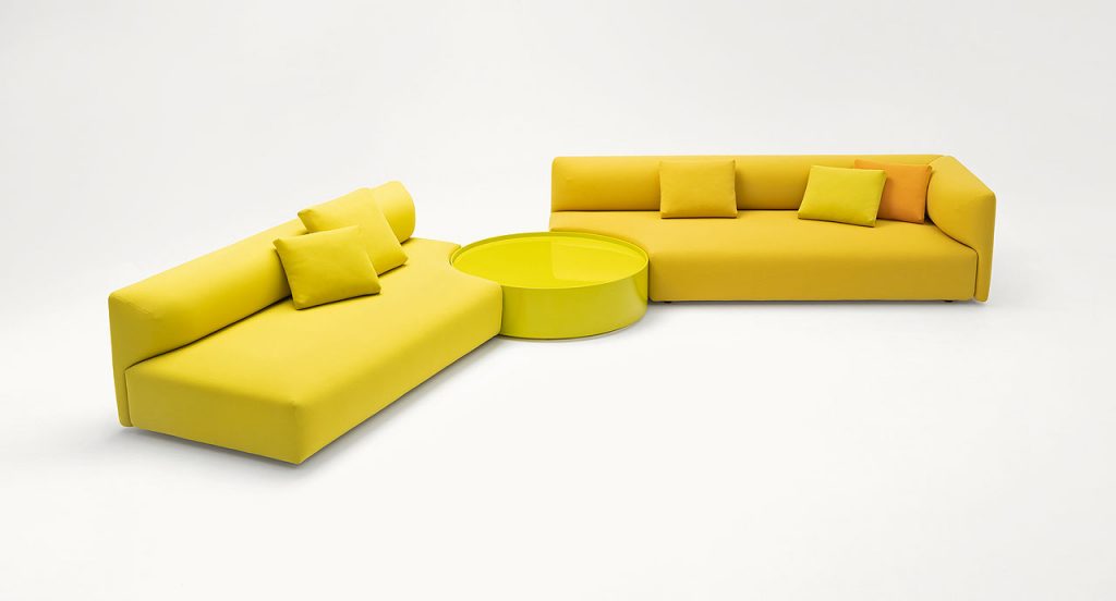 Series composed of two-seater and three-seater sofa, linear or shaped sectional elements, with or without removable seat cushion, and poufs. - A large side table and little side tables with a side opening finished Mano Lucida completes the series. - Structure: multilayer wood, seat provided with elastic belts, plastic spacers. - Padding: stress resistant, differentiated expanded polyurethane; foam covering in polyester fibre and polyamide. - Seat cushion: stress resistant expanded polyurethane; foam covering in polyester fibre and polyamide. - ?Upholstery: removable and available in all the fabrics in the collection. - Notes: We advise to use loose cushions for enhanced comfort. Walt shaped elements are available only in the version without removable seat cushion. The elements Walt can be used to create compositions including the large poufs and the side tables in the collection. Compositions of Walt elements do not require any coupling system.