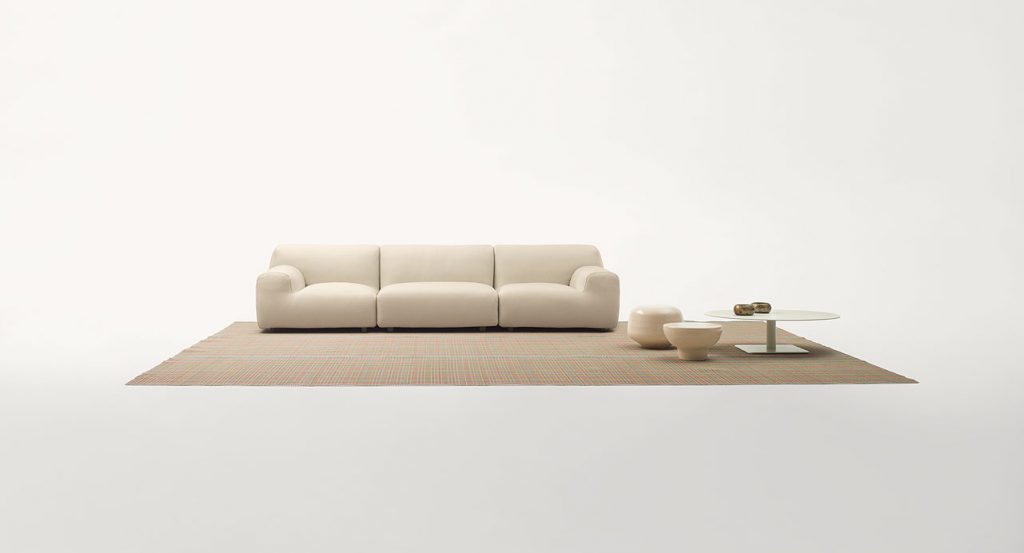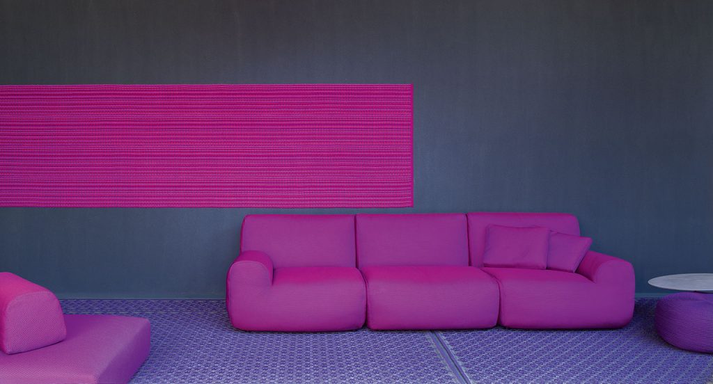 Modular seating system consisting in elements with armrest, central and corner elements, chaise longue and pouf. - Structure: cataphoresis treated and varnished steel, plastic feet. - Padding: stress resistant expanded polyurethane and polyester fiber. - Foam covering: water repellent polyester. - Upholstery: removable cover in the fabrics Luz, Rope T, Light, Brio or Thea. - Coupling system: steel. - Notes: loose cushions are recommended for enhanced comfort. - We advise to use a Winter Set protection cover. - Welcome can be combined with Jolly and Island poufs, with Orlando seating elements and with selected side tables of the series Frame.