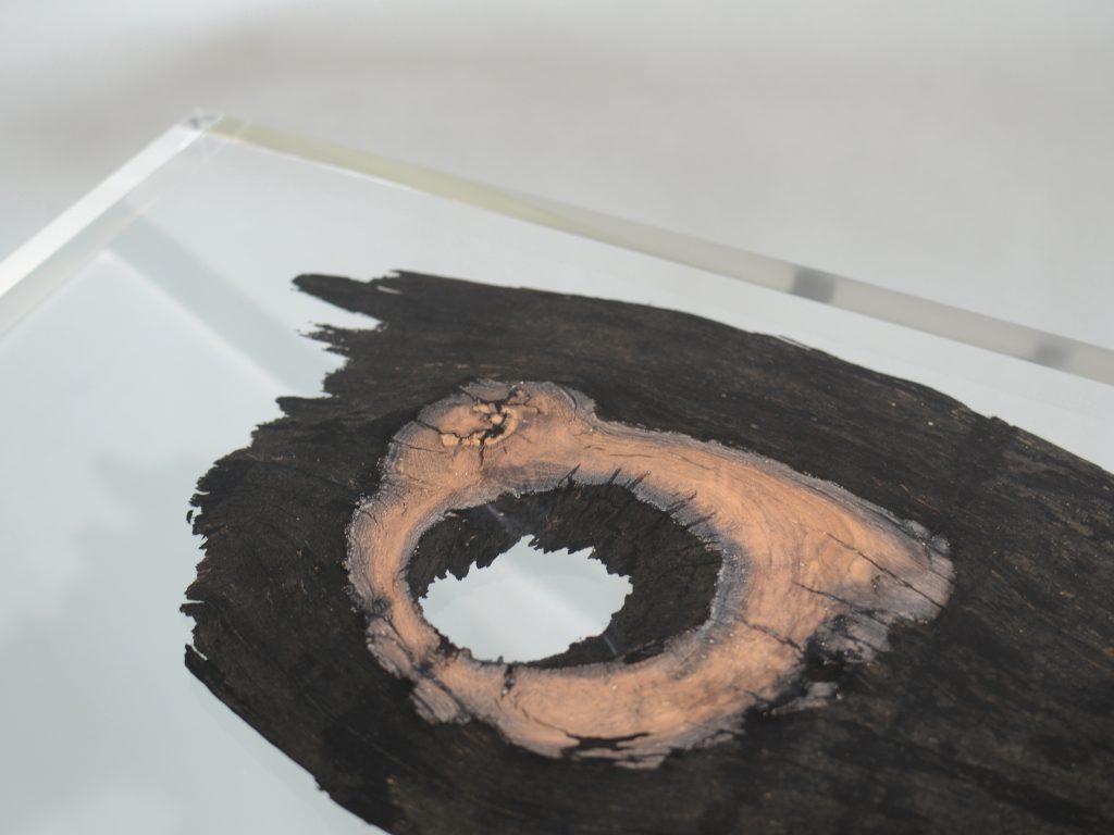 Like the water over millennia, the alcarols transparent resin surrounds the organic shapes of this unique wood, preserving and enhancing all its preciousness and charm.