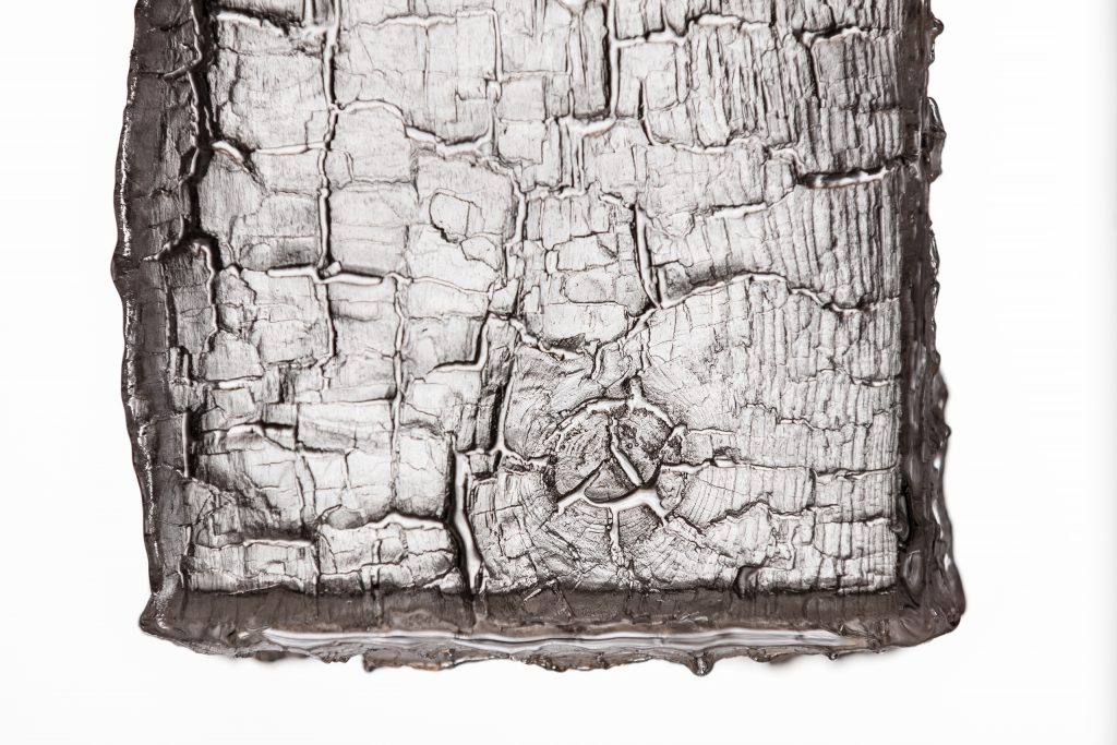 The renowned Japanese architect drew his inspiration from a technique for preserving construction timber by charring its surface, known in Japan as Shou-Sugi-Ban or Yakisugi. This ancient technique uses charring wood as means to preserve it without the need of painting or sealing, an aspect leading to the current revival of this technique in eco-friendly architecture. Adapting this process to the centuries-old glass craft technique enabled a contemporary design that is unique for every single piece of hand-blown glass. Hand blown Bohemian Crystal Glass