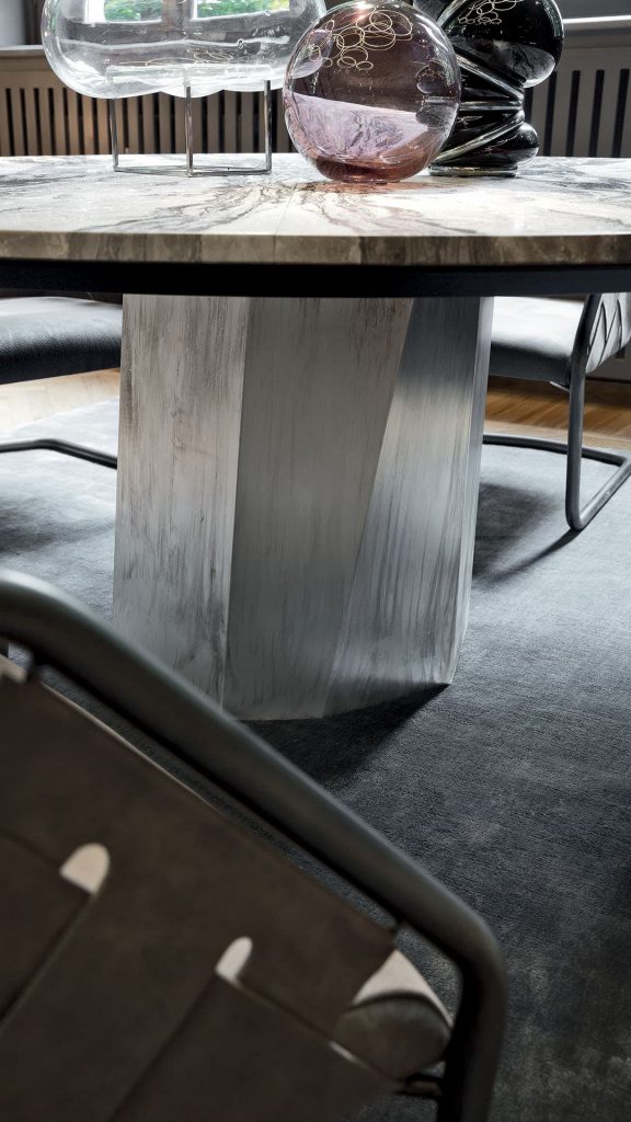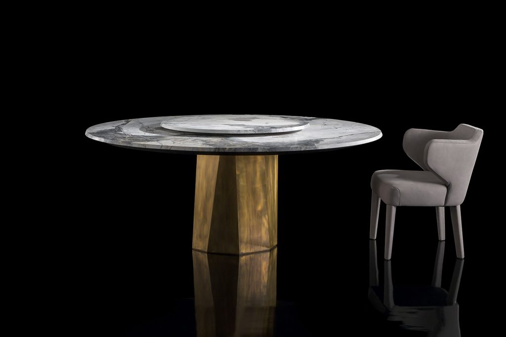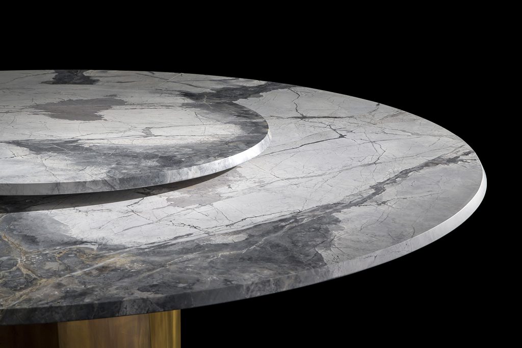 Structure internal structure in steel hand-burnished black. Brass casing hand- burnished - top wooden top in plywood 2 cm thick veneer. Stone top in 2 cm thick stone from our range. Any request for monolithical top has to be assessed by reference to the chosen material and the availability of the slab at the moment of the order confirmation